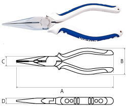 ビクター(花園工具)先長ラジオペンチ 150mm282-A-150価格: 2,114円レビュー評価: 0.0 レビュー数:0 ◆先端部は細く強靭でくわえ・折り曲げ作業に適し、耐久性・切断力も優れています。 ◆Aは成型カバー付 Bはソフトカバー付 品番 サイズ (mm)(in) A B C D 切断能力 (mmφ) 重量 (g) 鉄線 銅線 282-A-150 150 (6") 162 53 17 10 1.5 2.6 130 282-A-200 200 (8") 200 51 21 11 2.0 3.0 220 282-B-125 125 (5") 131 52 13 8 1.2 2.6 60 282-B-150 150 (6") 162 51 17 10 1.5 2.6 125 282-B-200 200 (8") |