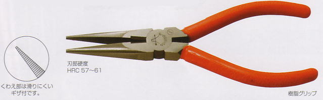 フジ矢(FUJIYA)ラジオペンチ 150 350-150価格: 1,640円レビュー評価: 0.0 レビュー数:0 ラジオペンチ Long Nose Pliers エレクトロニクス、精密機器等の組立・修理・分解作業に最適です。特に先端部は強靭で、 くわえ・折り曲げ作業に抜群の耐久性を持ち、刃部の切断能力・耐久性も優れています。 切断能力 mm 品番 鉄線 銅線 350-125 φ1.5 φ2.6 350-150 φ1.5 φ2.6 350-200 φ2.0 φ3.0 品番 サイズ 刃部硬度 a mm b mm c mm d mm e mm f mm g mm h mm 重量 g/w 350-125 125 HRC57?61 142 16 9 52 10 28.5 2.5 2 95 350-150 |