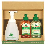 単品で買うより、\400お得!Frosch(フロッシュ)お洗濯用ギフトセットシリーズ -ファイン&ウール+詰め替えボトルセット-価格: 3,045円レビュー評価: 0.0 レビュー数:0 ウールやシルクなどおしゃれ着用の洗濯洗剤ファイン&ウールと、2008年夏に発売されたばかりの詰め替えボトルをエコパッケージに詰めたギフトセット。洗濯洗剤は保湿機能を備えた「小麦から採れたナチュラル・プロテイン」が、ダメージを受けた繊維を修復、洗濯時に起きる衣類の毛羽立ちを防ぎ、デリケートな生地を優しく洗いあげます。その洗剤を小分けする詰め替えボトルがセットになり、単品で2種類購入より400円お得!※単品はこちらから→ファイン&ウール内容:ファイン&ウール(2リットル)×1点、詰め替えボトル×1点、エコパッケージ入り原産国:ドイツ(洗濯洗剤)、日本(ボトル) 植物ベースで、環境に優しい! 「フロ |